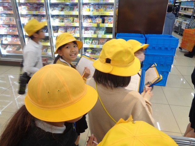社会科の「店ではたらく人」についての学習のまとめを行いました。実際にスーパーマーケットを見学させていただけたおかげで、たくさんの気付きを得ることができました。写真は、先日のスーパーマーケット見学の様子です。
