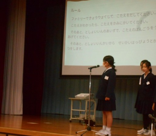 今日の岩瀬っ子タイムは、情報図書委員会による集会を行いました。図書に関するクイズを出したり、おすすめの本を紹介したりしました。