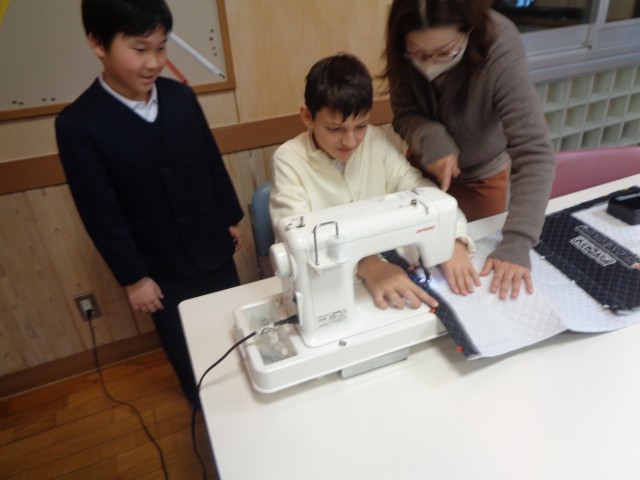 家庭科の学習では、トートバッグ製作をしています。5年生のときに学習したミシンの使い方を思い出しながら、丁寧に作りました。