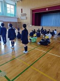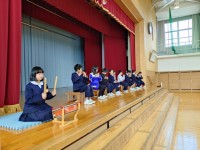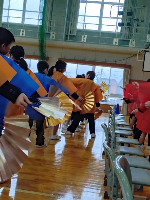 4年生 創校記念式(まだら踊り・祝いのお囃子演奏)リハーサル