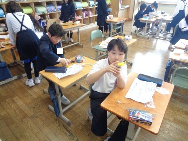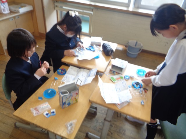 理科の実験キットを使って、磁石や電気の力を利用したおもちゃをつくりました。