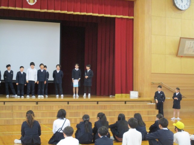 6年生が退場した集会後には、1~5年生への感謝の気持ちと、最高学年になる自分たちにこれからも協力してほしいと伝え、締めくくりました。