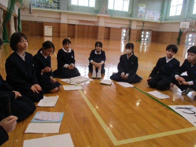 5年生は片づけをして、輪になって振り返りをしました。「みんなが協力してくれてよかった」「6年生が笑顔で退場してくれてよかった」「たくさん考えて、準備をしてきてよかった」と満足そうな様子でした。