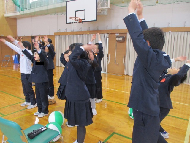 卒業を祝う児童集会では、4年生一人一人の得意分野や技を生かした出し物(ダンスあり、野球・ビーチ・ソフトテニスボールのキャッチやサーブあり、おみくじあり)を披露して6年生の卒業を祝いました。4年生の明るさと元気が6年生に伝わり、一人一人が達成感を味わいました。