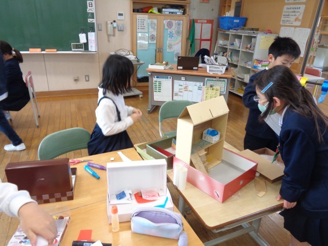 階段や滑り台、トランポリンなど、あったら楽しそうだと思うものをどんどんを作っていました。