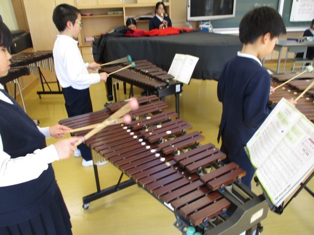 演奏してみたい楽器を選んで音色を味わい、合奏で音の重なりを楽しみながら演奏しました。音楽室をのぞかれた校長先生に発表することができ、アンコールと感想をいただいた子供たちの表情は、笑顔と達成感にあふれていました。