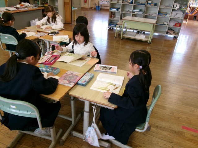 「ふきのとう」のお話をグループで音読します。「小さい声で読もうかな」「元気に読むよ」とみんなで話し合っていました。