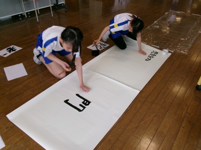 6年生になり、本格的に児童会スローガンを考え、掲示用の看板をつくったり、委員会発足のために担当の先生と自分達の考えをもとに打合せにいったりと大忙しの日々を過ごしています。
