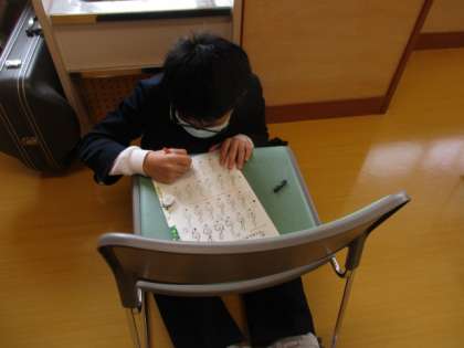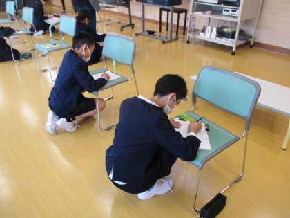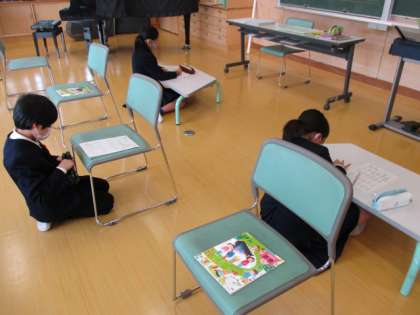 音楽科では、新しい音楽の先生と一緒に授業を進めています。曲を聴いてどんなイメージだったかを表現しています。