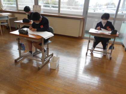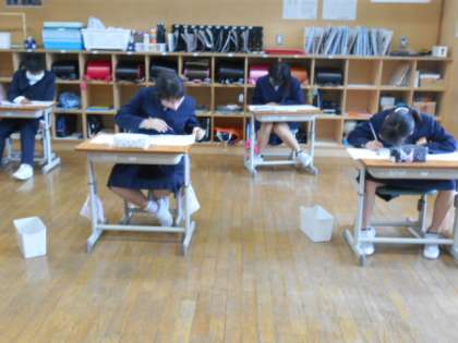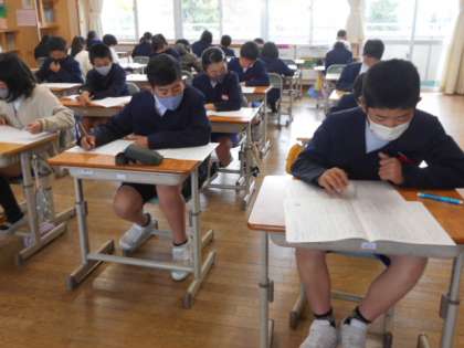 昨年度の学習内容が出題されており、自分の力がためされるため、みんな真剣です。明日は、算数・社会です。