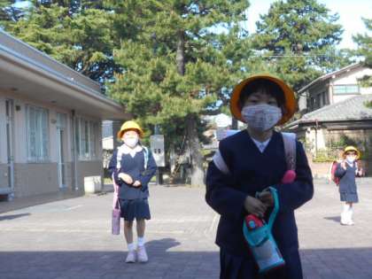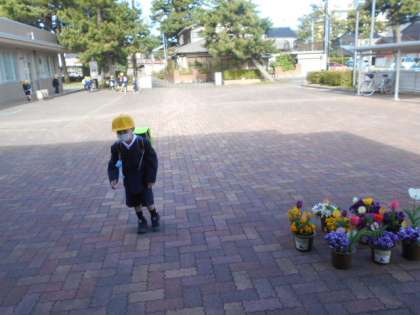 週末のよく晴れた朝、元気よく登校してきました。ずいぶんと慣れてきました。
