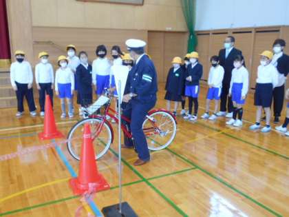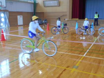 3・4年生は、体育館で自転車乗車体験をしました。警察の方に教えていただきながら、安全に乗車し信号機や横断歩道でしっかり止まります。地域の交通指導員、警察署員、市職員の皆様、ご指導ありがとうございました。ミニ動画クリック→4年自転車(昨日お知らせしたパスワード入力。パソコンで視聴できるようです)