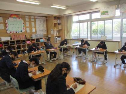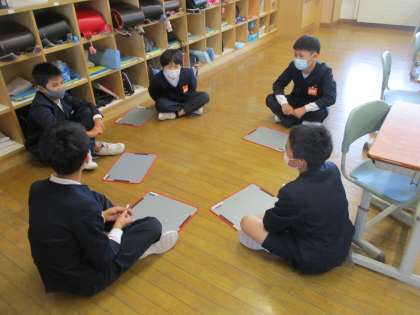 連休明けの最初の朝活動。頭を使うトレーニングや話合いで盛り上がっています。