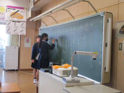 運動会のスローガンを決めるために、クラスで話し合っています。小学校生活最後ということもあり、熱が入っています。