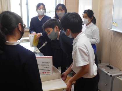 金曜日の放送当番。給食の献立や、今朝のあいさつ運動の様子を紹介しています。