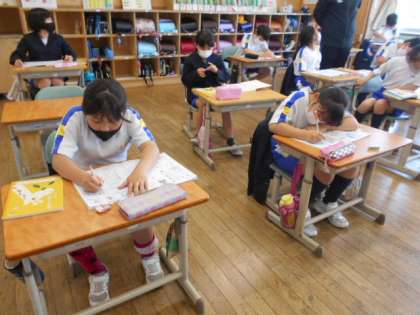 新出漢字の「愛」や「昨」を学習しています。4年生らしく、難しく画数の多い漢字や学級にいる友達の名前の漢字が増えてきました。