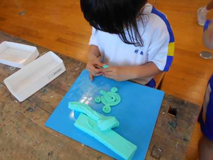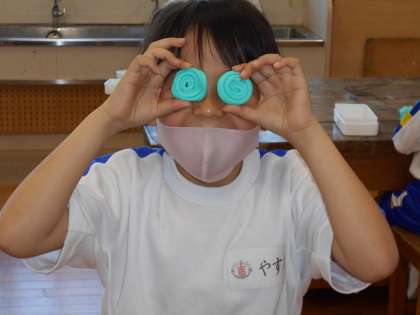 ひもにした粘土で、眼鏡やお菓子を作っている子もいました。