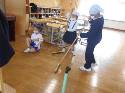 今週からファミリー班(縦割り班)での清掃が始まっています。5・6年生が1・2年生にそうじの仕方を教えたり、上級生と下級生が一緒に机を移動したりする協力的な姿が見られます。
