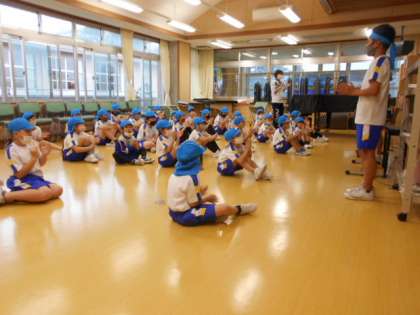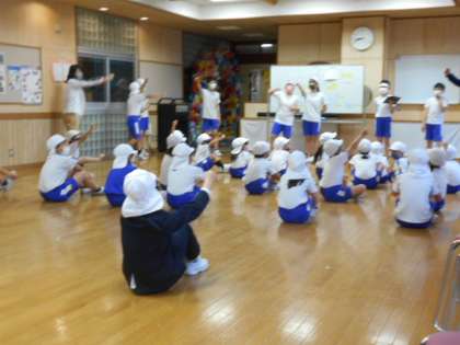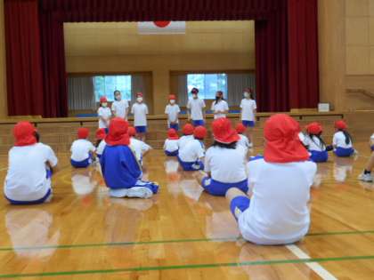 5月21日(金) 結団式 公開日 2021/05/21 更新日 2021/05/21 6年生 「岩瀬っ子スポーツフェスティバル」に向けて、全校と各団の結団式を行いました。6年生が運動会のスローガンや応援パフォーマンスを披露しました。その後、各団に分かれて、団役員の紹介、手拍子による応援練習などをしました。大きな声は出せませんが、団結の心で運動会を盛り上げます。ミニ動画→6年パフォーマンス、結団式(白団)、結団式(青団)