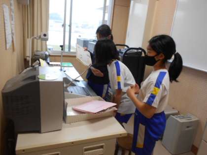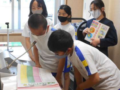 献立紹介やクイズを放送する、金曜日当番児童の様子です。