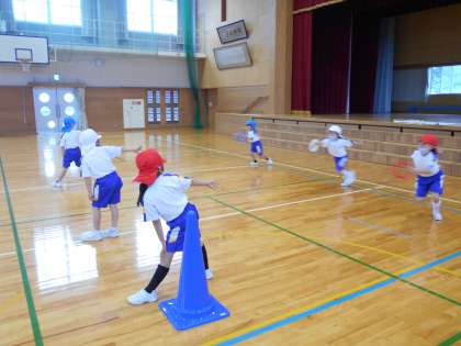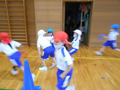 さらに、低学年リレーのバトンの練習をしました。「みぎてでもらって、ひだりにわたすよ。」と教え合っていました。体育館で走りながら練習すると、緊張感がありました。