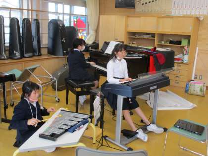 音楽科では、リコーダーや打楽器などを用いて演奏の練習をしています。今後予定されている岩瀬タイムで披露するので、今後も頑張っていきます。