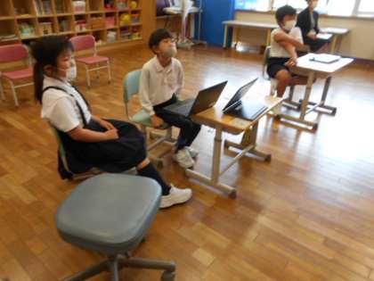 桃組では、先生方となかよくなるために、自分がどんな様子で話しているか、タブレットを使いながら、撮影したり動画を見たりしています。「声が大きくてよく聞こえるね」「こうした方がいいと思うよ」など、互いに教え合う姿が見られます。ミニ動画→話し方動画