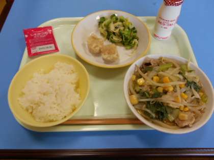 今日の献立は「ごはん、サッポロラーメン、かにシューマイ、ブロッコリーサラダ、しそかつおふりかけ、のむヨーグルト」でした。