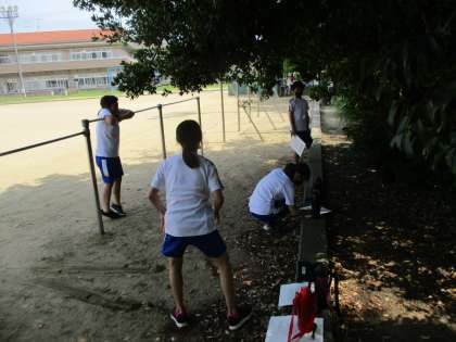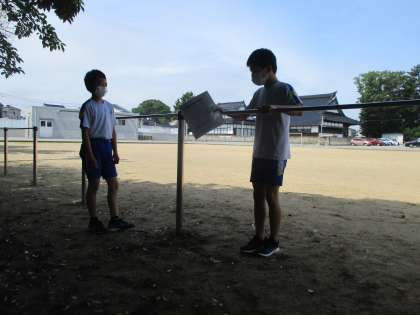 体育科では、鉄棒カードを見ながら様々な技に挑戦中です。普段から鉄棒練習をしているので、すらすらとこなしています。