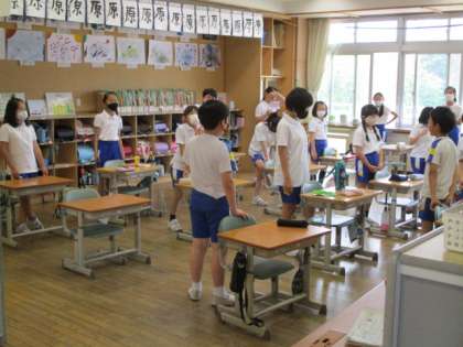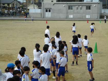 全校児童105名が登校しました。1学期の皆出席12日目です。朝のチャレンジタイム、グラウンドでは2・3・4・5年生が、元気に50m走やランニングに取り組んでいます。