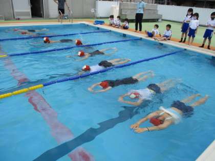 6月29日(火) 6年生 「2年ぶりのプール!」 公開日 2021/06/29 更新日 2021/06/29 6年生 6年生が全校の最初として、初泳ぎをしました。昨年度は入ることができなかったので、2年ぶりの水泳学習です。自分たちがそうじをしたきれいなプールで、気持ちよく水しぶきをあげていました。1年生も見学して、初泳ぎをドキドキ楽しみにしています。ミニ動画→6年初泳ぎ1、6年初泳ぎ2
