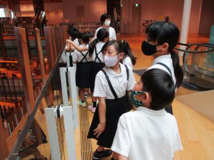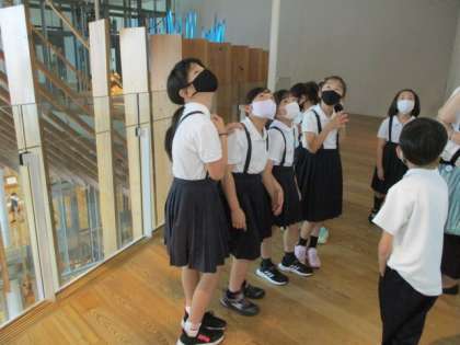 ガラス美術館では、美しい作品、不思議な作品、少しこわそうな作品など、ガラスの美しさや特性を生かした多くの展示を見て「ガラスで作ったとは思えないね。クッションかスポンジみたい」「魚や果物みたい」と、子供らしい想像力をふくらませていました。
