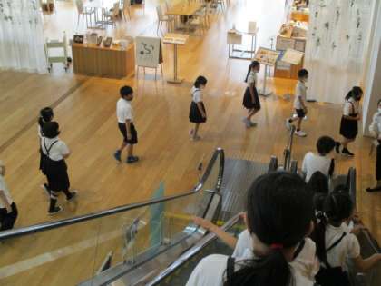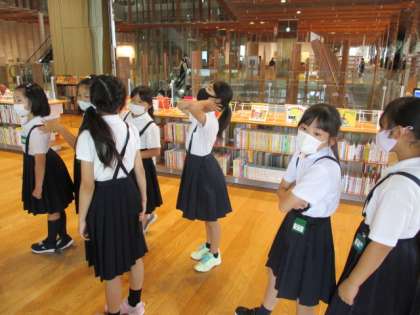 市立図書館本館では、めったに入れない書庫に入れていただいたり、本の借り方を教えていただいたりしました。「ここで本10冊まで借りることができて、岩瀬分館で返すこともできるそうだよ」「学校の図書館よりいっぱいあるね」美術館とともに、またご家族で図書館にも行きたいようです。