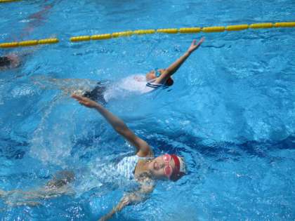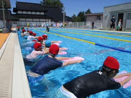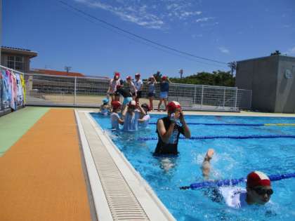 5年生初泳ぎ。自分たちできれいに掃除したプールで、気持ちよく泳ぎました。