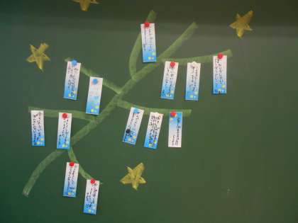 七夕ということで、お願い事をしました。「地球まわりができるようになりたい」「コロナが落ち着いてフィンランドに行きたい」など、短冊に一生懸命書いていました。
