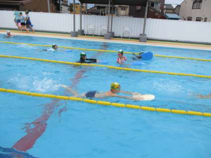 7月12日(月) 3・4年生 気持ちよくプールに 公開日 2021/07/12 更新日 2021/07/12 4年生 3・4年生合同で、プールに入りました。ビート板を使って息継ぎの練習をしたり、水中にもぐって宝探しをしたりしながら、少しずつ泳げるようになっています。ミニ動画クリック→3・4年水泳1、3・4年水泳2