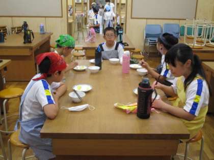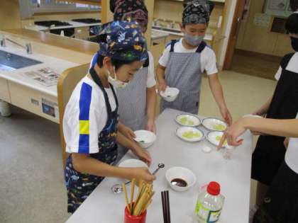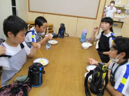 ゆで加減も塩加減もほどよく、ほかほかに仕上がりました。おいしく食べる動画クリック→5年調理実習3