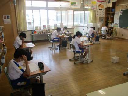 今日は1学期で学習した範囲のたしかめを行いました。自主学習やプリントでたくさん復習を行った成果を発揮しようとする6年生です。