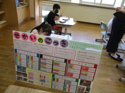作品や自由研究に付けるカードに、自分の名前や題名を書く子供たち。一人一人の思いや努力、頑張りが感じられます。保護者の皆様も、ご指導や励ましをいただき、ありがとうございました。