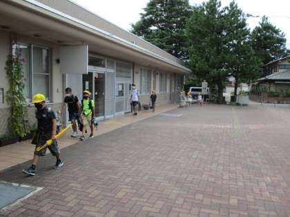 2学期初の月曜日。道具箱や水筒、体操服など、重い荷物を持ってきた子供たち。少しでも軽いナップザックや手さげカバンに入れて、私服や体操服・推奨服など、気温や時間割に応じた服装で登校しています。★今日から給食も始まり、全校5限後、下校します。
