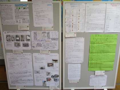 5年生の廊下に、夏休み自由研究の掲示があります。地域の環境や生き物調べ、「オリンピック調べ」「軟水や硬水について」など、工夫や努力が感じられる高学年らしい作品に仕上がっています。