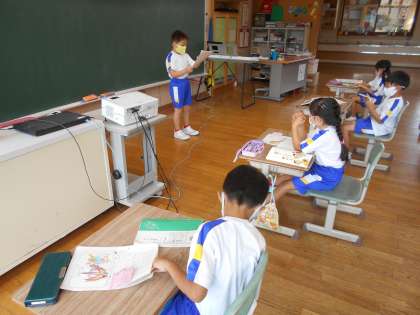 9月3日(金) 1年生 ききたいな、ともだちのはなし 公開日 2021/09/03 更新日 2021/09/03 1年生 友達が夏休み何をしたのか聴きました。また、知りたいことを聞いたり、感想を言ったりしました。