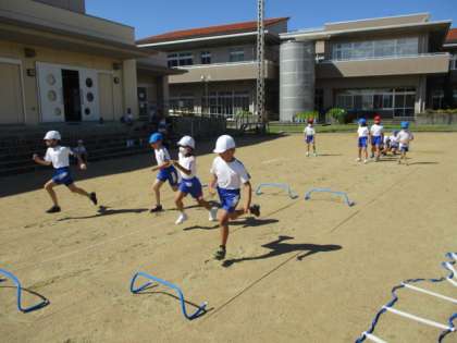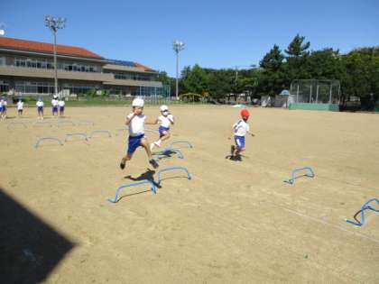 9月6日(月) 3年生 ミニハードル走2 公開日 2021/09/06 更新日 2021/09/06 3年生 3年生が体育で、1コースに4台のミニハードルを置き、跳んで走る練習に取り組んでいます。今日は、インターバル(ハードル間の距離)が違うコースで走ってみました。ミニ動画クリック→ミニハードル走1、ミニハードル走2、ミニハードル走3