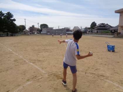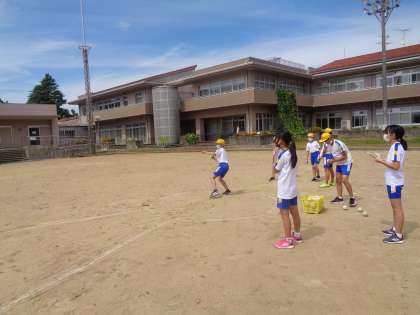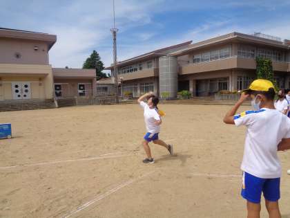 ソフトボール投げを行いました。一学期と比べて記録が伸びた子供もいます。これから少しずつ練習していきます。