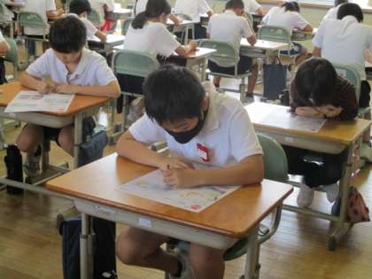 1時間目から、社会科水産業のテストに取り組む5年生。さすが高学年、みんな真剣です。