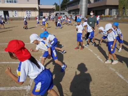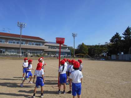 今日は、朝の50メートル走の練習、1時間目に玉入れと運動会の練習でした。「位置について」「よーい」のかけ声を集中して聞いて、走り出していました。初めてグラウンドで行った玉入れの練習では、かごに入るように距離や投げ方を考えて投げていました。