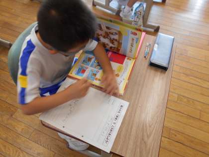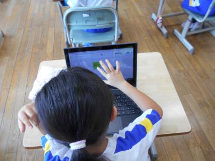 次の1年生に、自分のお気に入りの物を伝えようと、タブレットで作成しました。なまえや、お気に入りの物や場所、理由を書きました。