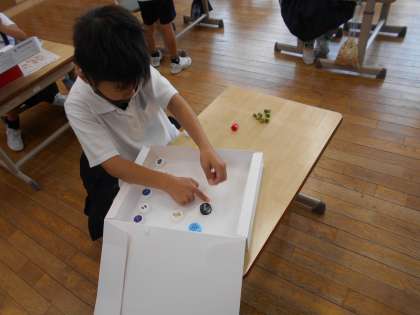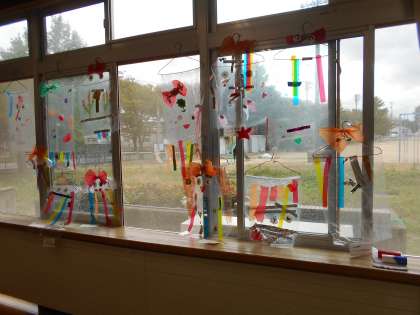 図工では、風にゆらゆらゆれる作品を作りました。今日は、風が吹いていませんでしたが、自分で揺らして動きを楽しんでいました。
