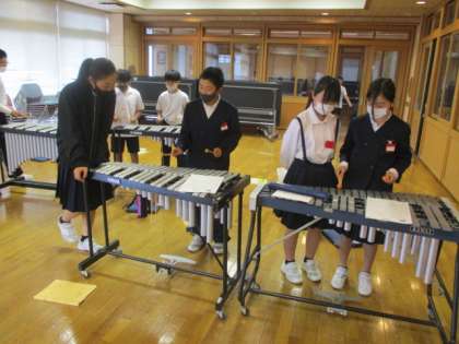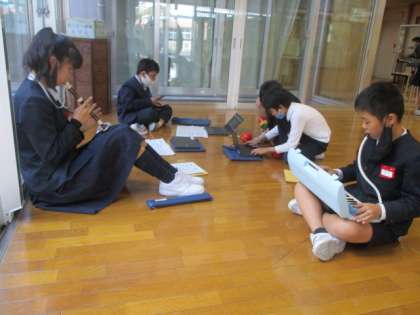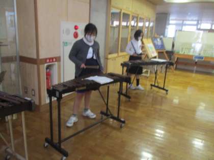 10月21日(木) 5年生 演奏発表目指して 公開日 2021/10/21 更新日 2021/10/21 5年生 5年生が楽器の練習をしています。少しテンポの早い曲ですが、リコーダーや鍵盤ハーモニカ、鉄琴、木琴、太鼓、キーボードなど、自分で選んだ楽器に取り組み、タブレットを使いながら教え合って練習しています。 練習の動画→楽器練習1、楽器練習2