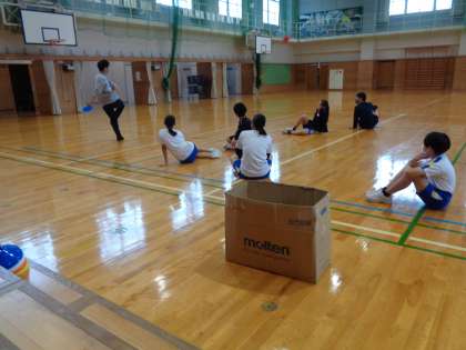 体育科では、今後「フリーゾーンサッカー」を行っていく予定です。今日はまずボールを足のどこで蹴れば、遠くまで飛ばせるか実践しながら考えました。